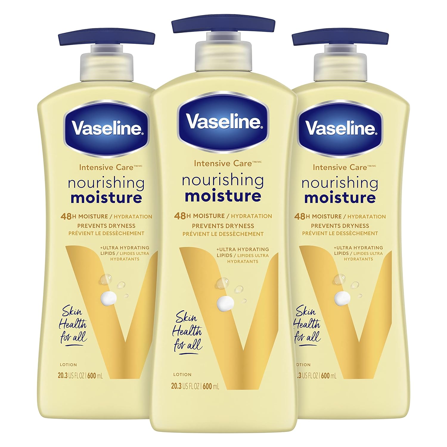Vaseline Hand & Body Lotion Nourishing Moisture 3 Ct Intensive Care for Dry Skin with Pure Oat Extract 20.3 oz