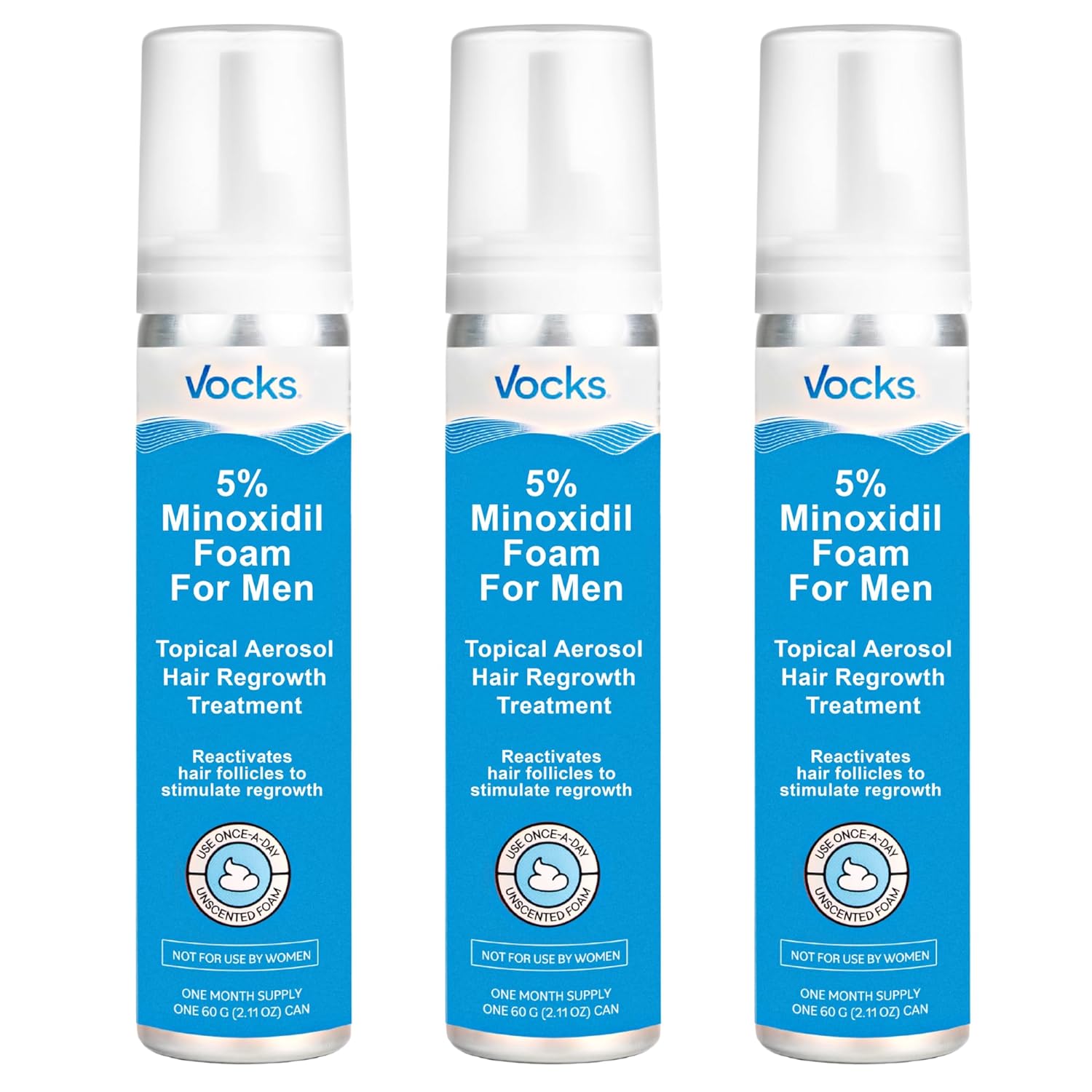 Vocks 5% Minoxidil Foam for Men - Extra Strength Clinically Proven - Unscented Hair Regrowth Treatment - Anti Hair Loss and Promotes Thicker Fuller Hair - 3 month supply